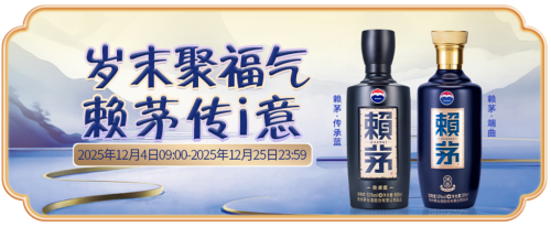12月4日09:00-12月25日23:59,开启“岁末聚福气 赖茅传i意”活动。购53%vol 500ml赖茅酒(端曲)(2.0)享258元/瓶活动价(零售价418元/瓶),购买达指定数量可分别获赠赖茅定制SKG颈部按摩仪、特美刻牌保温杯等礼品。购53%vol 500ml赖茅酒(传承·蓝)(2.0)享338元/瓶活动价(零售价568元/瓶),购买达指定数量可分别获赠赖茅定制外交官拉杆箱、赖茅虎年生肖酒等礼品。举信赖,敬真情~