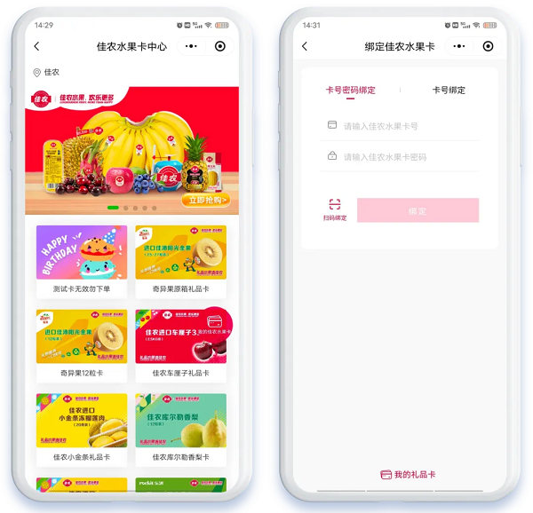 在礼品卡场景上,双方将推出定制化果业礼品卡体系:企业可根据需求自定义礼品卡面额、权益组合等;在礼品卡分发环节支持卡密传输,无需实体卡流转,降低管理成本;消费者兑换时,系统可基于用户地域、季节偏好推送适配的果品套餐。