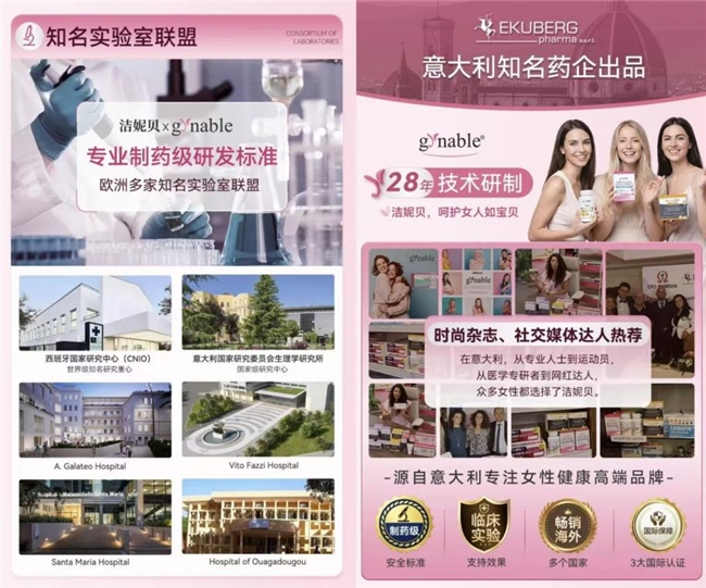 Gynable洁妮贝源自意大利,始终以“医护级”标准进行产品研发与生产。产品从原料筛选到配方定型,全程遵循欧盟GMP药品生产质量管理规范,并坚持 “8大无添加”纯净承诺(无防腐剂、香精、色素、激素等),确保即使在孕期、哺乳期等女性特殊生理阶段也能安心服用。